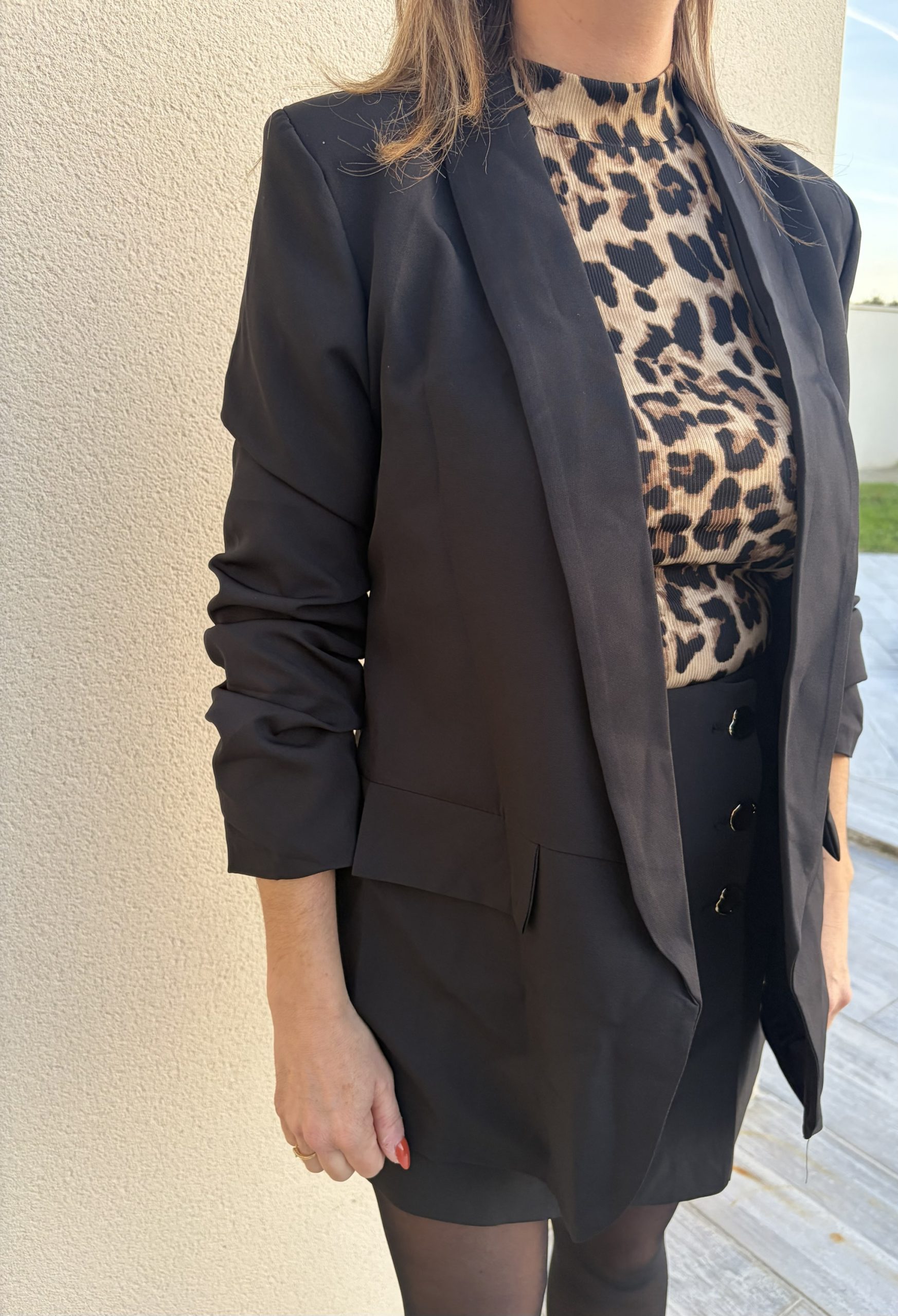 Élégante veste blazer italienne, manches froncées ajoutant une touche chic.